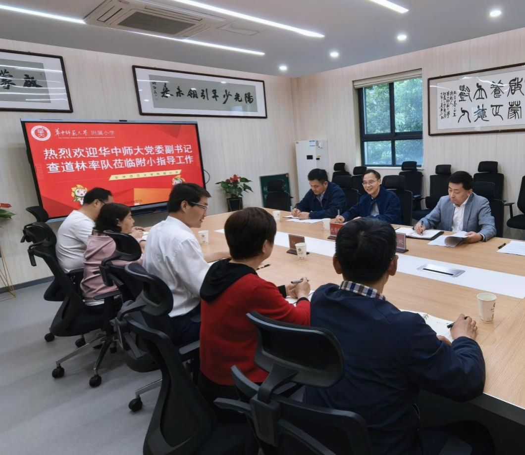 最后,查道林就附小当前的瓶颈问题与未来发展作出重要指示。他指出,附小要主动适应教育政策与生源变化,提前谋划、科学布局,稳定办学规模,优化师资与生源,走内涵发展之路。他表示,大学相关部门要全力协同支持附属小学破解发展难题:一是强化资源统筹,加快中小幼一体化建设,积极争取政策与经费保障;二是抓实队伍建设,畅通教师发展渠道,深化职称与用人改革,破解编制、职称等难题;三是深化内涵发展,巩固数字化与特色办学优势,提升教学质量和管理水平。他强调,附小要坚守育人初心,主动融入学校“幼小初高大”贯通培养体系,破解发展难题、提升办学品质,努力建成省内领先、全国知名的基础教育名校,为华中师范大学建设教师教育领先的世界一流大学、推动基础教育高质量发展贡献更大力量。