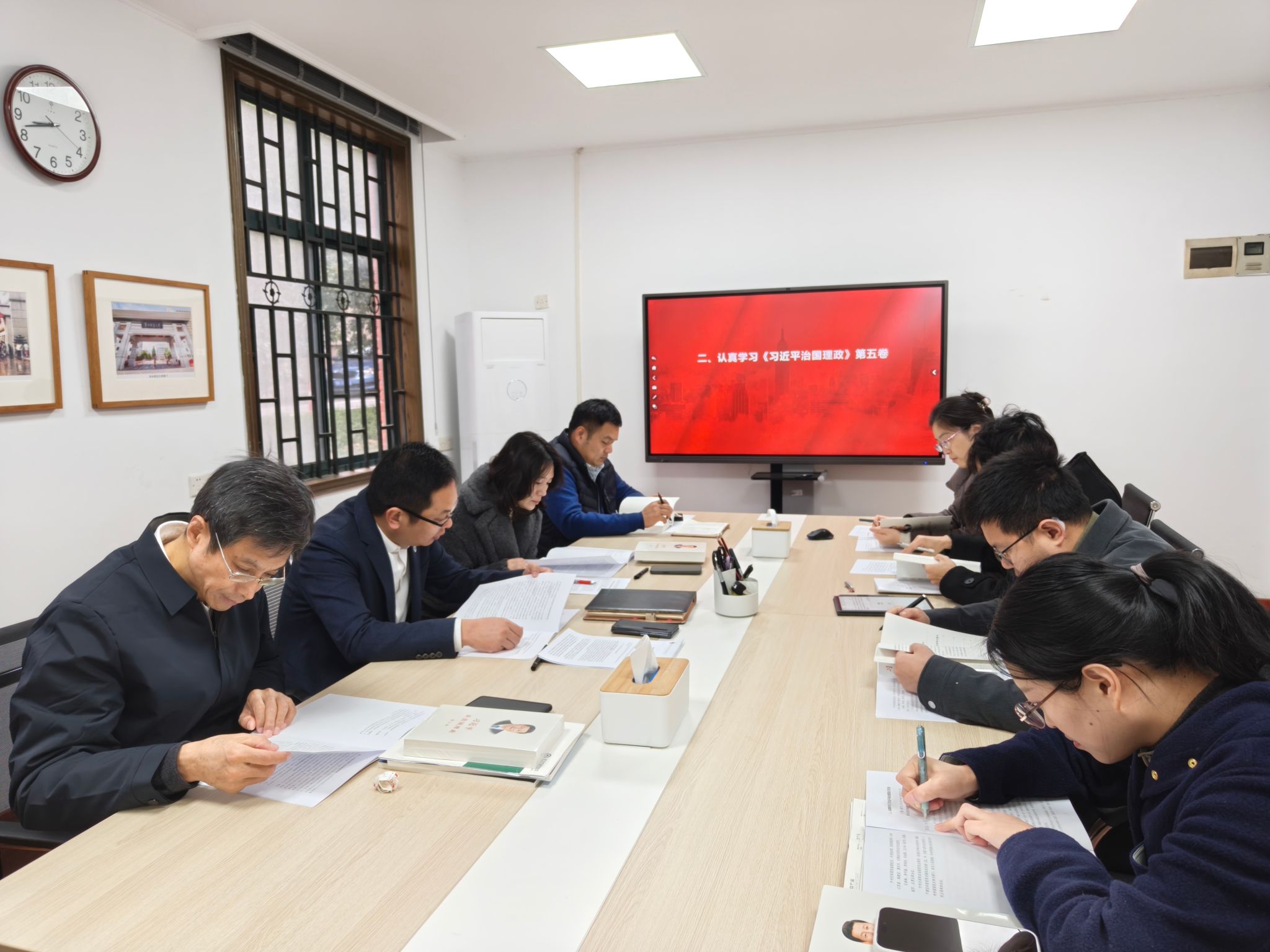 罗高峰同志带领大家学习《习近平谈治国理政》第五卷,他聚焦“中国式现代化”的理论体系和实践路径,通过领学与互动交流,带领支部成员深刻领会习近平新时代中国特色社会主义思想的时代内涵。他表示学习时要结合前四卷原原本本学、融会贯通学、联系实际学,同时认真参与学校党委安排的网上学习课程,深化对二十届四中全会和“十五五”规划的理解。