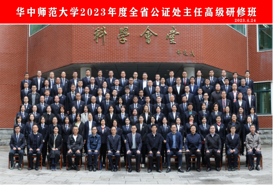 法学院讯(记者 吴国栋 潘杰昌)4月24日上午,2023年度全省公证处主任高级研修班开班式在华中师范大学科学会堂报告厅顺利举行。湖北省司法厅党委委员、副厅长周勇,湖北省公证协会会长刘嗣元,华中师范大学党委副书记、纪委书记陈厚丰出席开班式并讲话。湖北省司法厅公共法律服务管理处、华师法学院的负责人,协会各位副会长及各市州公证协会(联络处)负责人,各地公证处主任参加开班式。开班式由刘嗣元主持。