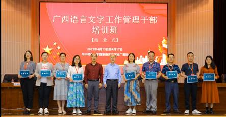 4月13—17日,受主办方广西壮族自治区教育厅的委托,华中师范大学国家语言文字推广基地和广西民族大学传媒学院共同承办了“2023年广西语言文字工作管理干部培训班”。培训班在华中师范大学举办,参加本次培训班的学员共60人,分别来自广西30个市县的48家政府单位和学校。