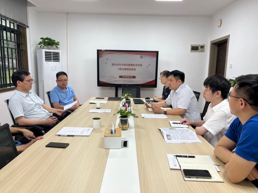6月27日下午,国内合作与培训管理处党支部在行政楼附楼104室开展了6月主题党日活动,会议由党支部书记洪早清同志主持。支部党员在集体重温入党誓词,学习党章后,按照学校党委组织部6月份支部主题党日活动安排开展了学习活动。