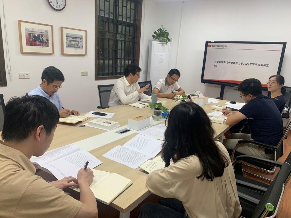 罗高峰同志就学校近期发布的《华中师范大学2022年下半年重点工作》带领支部党员共同学习。他在学习中说,下半年重点工作共十三项内容,内容非常丰富,其中多项部署与合作处工作息息相关,感受到任务艰巨的同时也体会到了学校对我处工作的殷殷期盼。合作处将进一步认清形势,找准问题,制定出切实管用的、能够真正解决问题的改革方案,并逐步推进实施,努力做好下半年各项工作。
