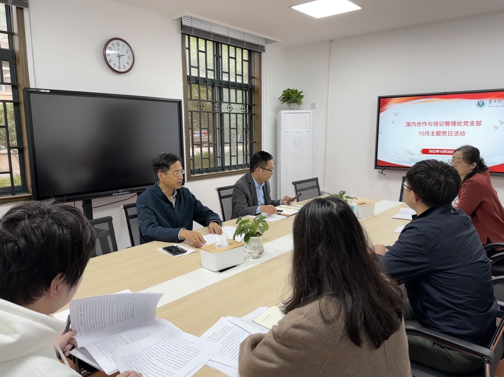 10月28日上午,国内合作与培训管理处在行政楼附楼104会议室开展了十月主题党日活动。活动由合作处处长洪早清同志主持,全体党员参会。