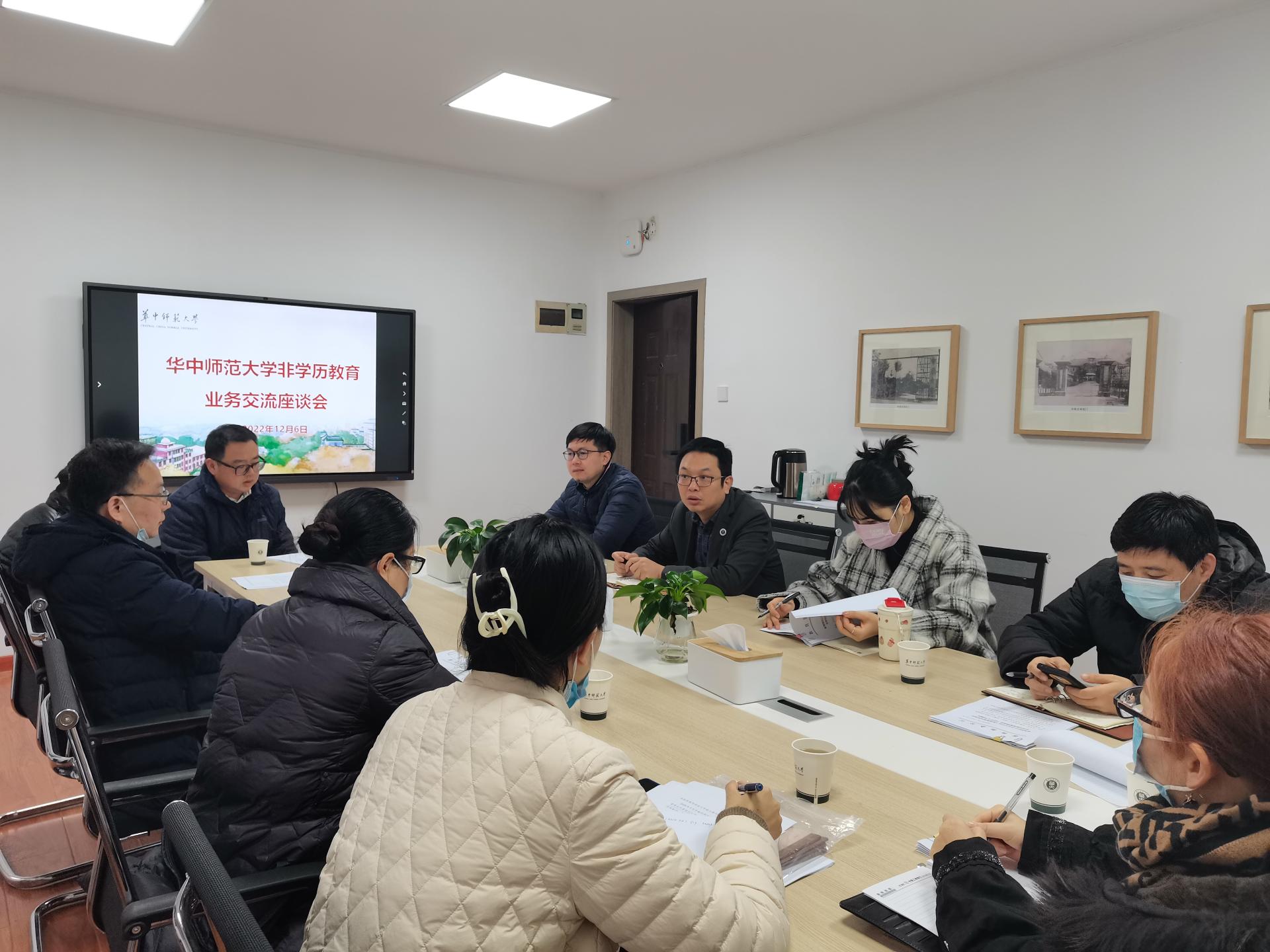 2022年12月6日,华中师范大学非学历教育业务交流座谈会在行政楼附楼104会议室召开,非学历教育归口管理部门领导和老师、各办学单位相关工作人员参会,会议由国内合作与培训管理处副处长罗高峰主持。
