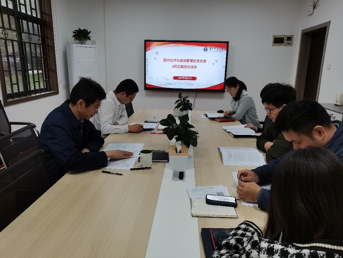 4月27日,国内合作与培训管理处党支部4月主题党日活动在行政楼附楼104室举行。本次活动由支部书记洪早清主持。