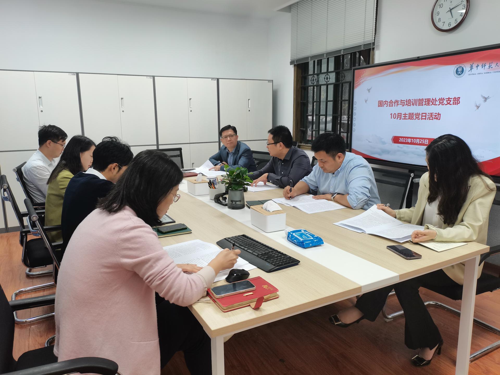 10月23日下午,国内合作与培训管理处党支部在行政楼附楼104会议室开展了10月份主题党日活动。支部全体党员参与了活动,活动由党支部书记罗高峰同志主持。