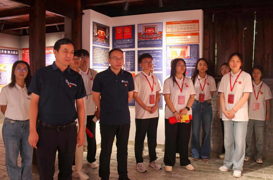 在讲解员的带领下,支部党员们前往东沟学堂进行沉浸式党纪学习教育,深入探寻党百年反腐的红色廉洁文化。数统学院党委书记刘成竹勉励各位党员,要好好把握此次社会实践机会,深入学习党的纪律建设发展历程,深学细悟习近平总书记关于全面加强党的纪律建设的重要论述。