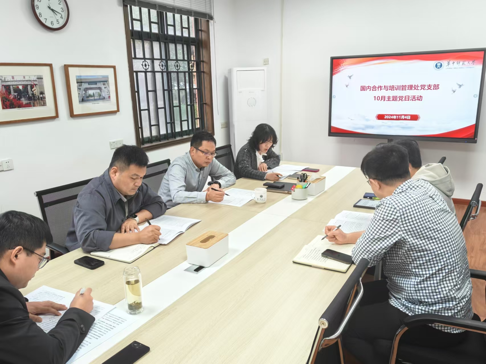11月4日下午,国内合作与培训管理处党支部在行政楼附楼104会议室开展10月主题党日活动,活动由罗高峰同志主持。