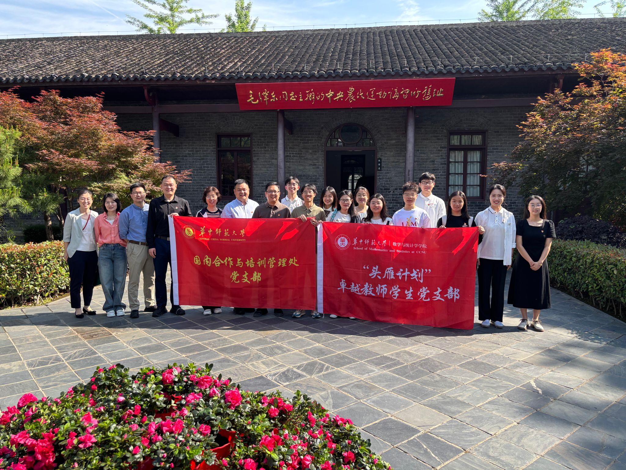 2025年4月29日上午,华中师范大学国内合作与培训管理处党支部和数学与统计学学院“头雁计划”卓越教师学生党支部联合开展“党建引领聚合力,联学共建促发展”支部共建活动,共同前往武昌中央农民运动讲习所旧址、毛泽东同志旧居、中共五大会址纪念馆等红色教育基地参观学习,通过实地研学、交流研讨深化党史学习教育,推动党建与业务深度融合。