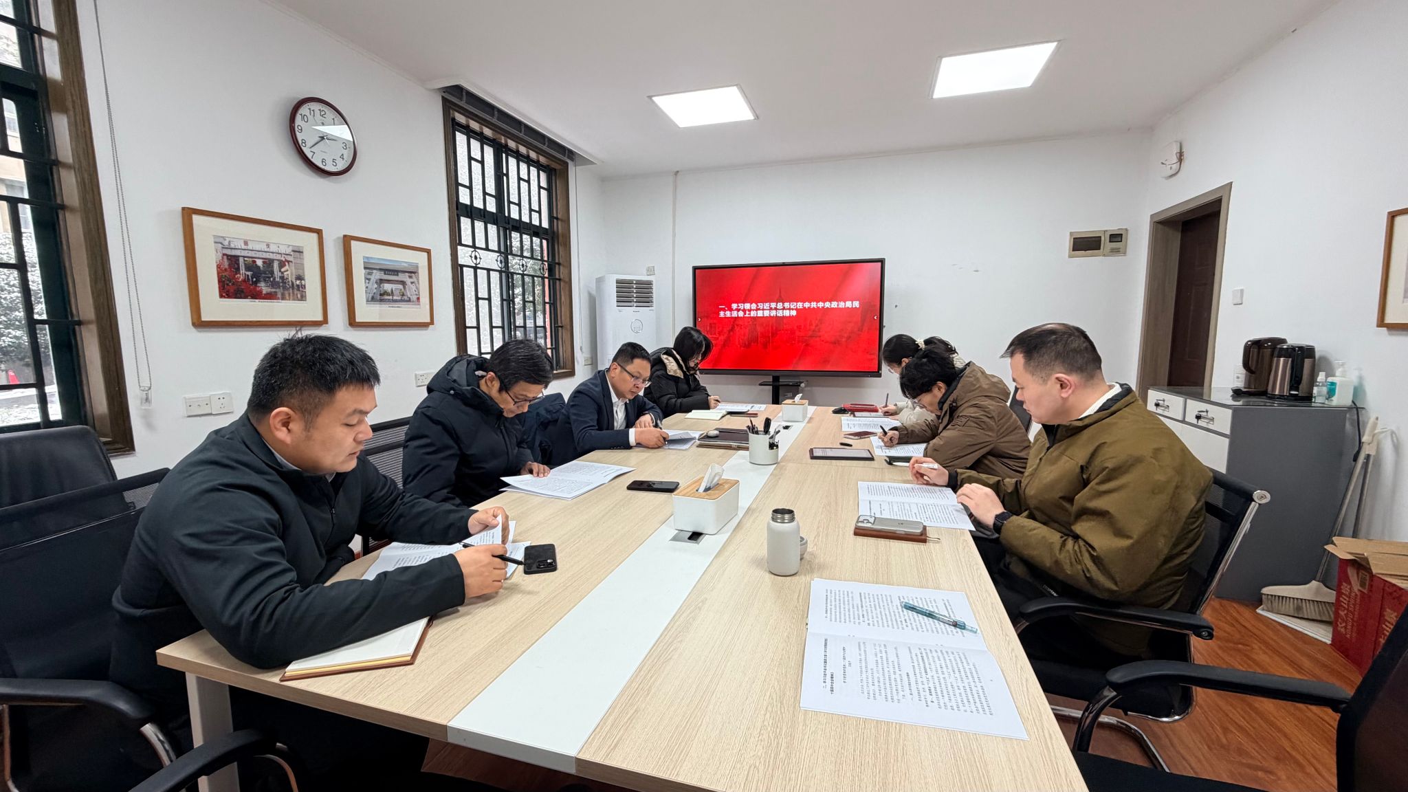 潘英子同志带领大家学习习近平总书记在中共中央政治局民主生活会上的重要讲话。全体党员重点学习会议围绕落实中央八项规定精神、推进作风建设常态化的核心要求,领会会议总结的2025年经济社会发展成果,以及对“十五五”开局之年的工作展望。大家深刻把握总书记对干部提出的诚信笃信、务实担当、自律修身的四点要求,明确要将中央八项规定作为铁规矩硬杠杆,持续整治“四风”。