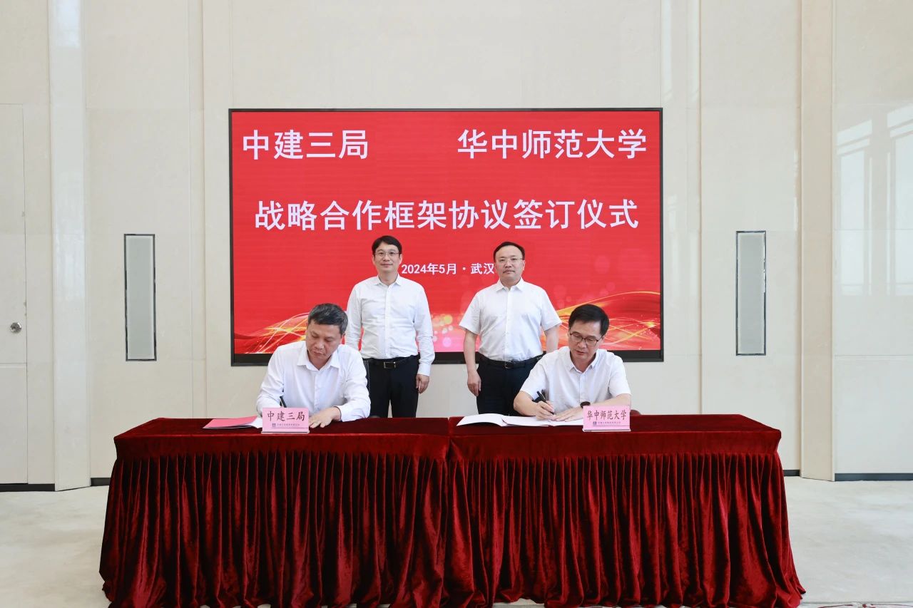 华中师范大学党委常委、副校长任友洲,中建三局副总经理夏元云代表双方签订战略合作框架协议。根据协议,双方将在发展战略咨询、科学技术交流、人才培养等多领域加强合作,促进校企双方高质量发展。