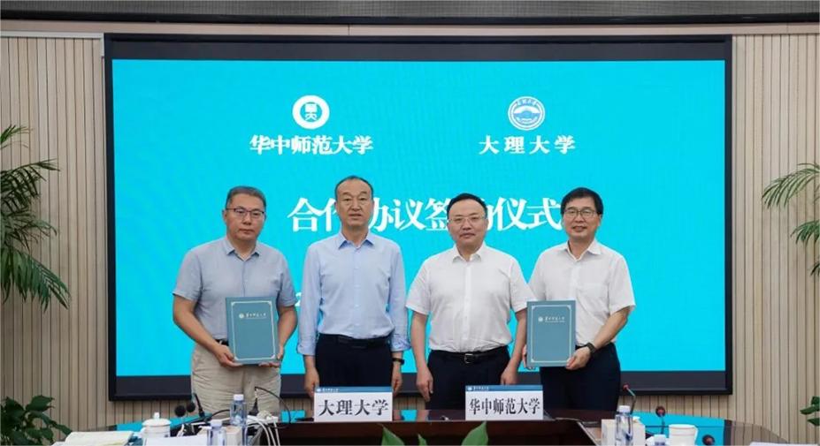 夏立新对杨顺清、廖望科一行的来访表示热烈欢迎,并介绍了我校120年办学成效及发展目标和思路。他表示,我校与大理有着血脉相融、割舍不断的校际情缘,要始终感念西迁大理办学时期大理人民的深情厚谊。我校与大理州、市尤其是大理大学开展了多领域帮扶合作,取得了较好成效。经双方友好协商达成共识,将原有的对口支援框架协议升级为战略合作协议,在保留教育部要求的对口帮扶指标以外,充分利用华中师范大学优势教育资源和大理大学地域资源,升级对口支援内涵。在人才培养、学科专业、科研平台、师资队伍、教育信息化等方面深化合作,期待进一步加强双方联系,在优势互补、交流互鉴上开展更加精准、深入的合作,相互赋能,携手并进,共同提质,进一步推进学校间资源共享、合作共研、人才共育,共同打造新时代校际合作典范,共同谱写共建共赢、协同发展的崭新篇章。
