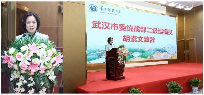 武汉市委统战部二级巡视员胡素文代表武汉市委统战部向香港教育局领导和新入职青年教师们的到来表示热烈的欢迎,并介绍了武汉的历史文化、交通区位、科教资源以及自然环境等方面的优势。她强调教师是人类文明的传承者,肩负着重要的时代使命。此次香港教育局和华中师范大学联合举办的香港新入职教师内地学习团,将进一步增强香港青年教师对祖国内地历史文化和科技进步的了解,为新入职教师的职业生涯打下坚实的基础,香港青年教师能积极融入祖国发展大局,并预祝本次学习交流活动圆满成功。