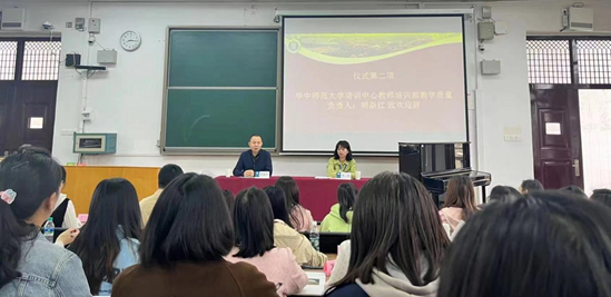 在开班仪式上,胡焱红副教授代表学校对各位老师的到来表示热烈欢迎,他简要介绍了华中师范大学及培训中心的基本发展状况,就本次培训的课程设置、师资配备及后勤管理等相关情况做了简要说明,最后,他希望在座的每一位老师在此次培训中认真学习,积极研讨,真正做到学有所思、学有所获、学以致用。