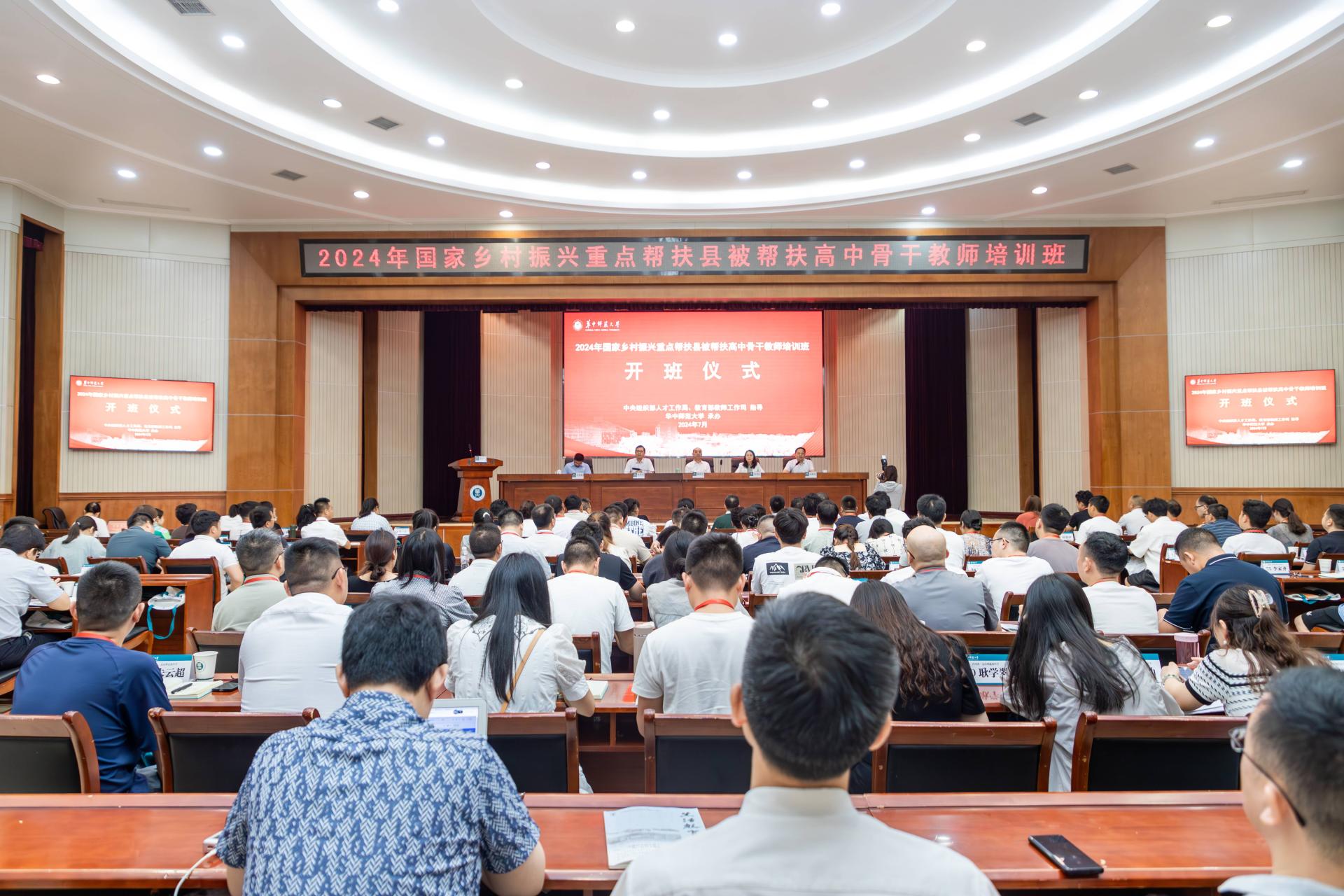 华大在线讯(通讯员 周尤 王筱瑨)7月27日,2024年国家乡村振兴重点帮扶县被帮扶高中骨干教师培训班在校开班。教育部教师工作司副司长韩劲红,第十三届全国人大常委会委员、中国教育学会副会长、我校教育学院教授周洪宇,校党委副书记陈迪明、副校长周鹏程等出席开班式。国内合作与培训管理处、教师教育学院、文学院、化学学院等相关单位负责人及全体参训学员参加。开班式由周鹏程主持。